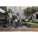Su diseño ligero y ergonómico (4,1 kg) y el tubo telescópico permiten limpiar cómodamente bajo muebles y en zonas de difícil acceso. La manguera flexible y la rueda giratoria 360° facilitan la movilidad, mientras que el depósito de 2 litros reduce la frecuencia de vaciado, optimizando el tiempo de limpieza.