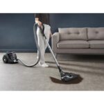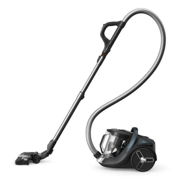 El sistema sin bolsa facilita el vaciado y reduce los costes de mantenimiento, mientras que el depósito de 2,5 L permite limpiar grandes superficies sin interrupciones. Su nivel de ruido de solo 66 dB la hace especialmente silenciosa, perfecta para viviendas y espacios compartidos. El radio de acción de 9 metros y el cable de 6,2 m con rebobinado automático ofrecen libertad de movimiento y comodidad en cada sesión de limpieza.