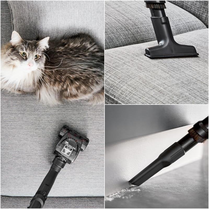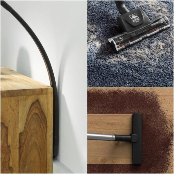 Incluye accesorios especializados como cepillo para parquet, boquilla para tapicerías, herramienta XL Flex y boquilla estrecha, adaptándose a cualquier superficie, desde suelos delicados hasta rincones de difícil acceso. El tubo telescópico metálico y el asa ergonómica mejoran la maniobrabilidad, mientras que la banda protectora cuida tus muebles y rodapiés. Si buscas eficiencia, higiene y facilidad de uso, esta aspiradora es tu mejor aliada. Descubre la diferencia de una limpieza profesional en tu hogar y disfruta de un aire más puro con cada pasada.