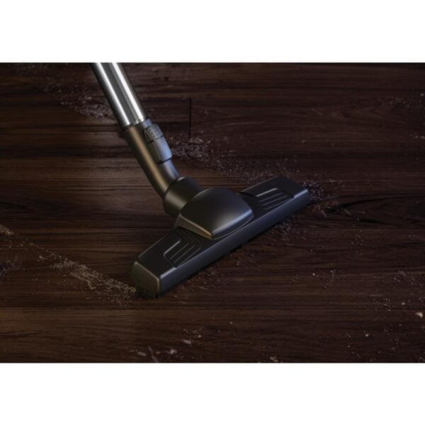 Está especialmente diseñada para suelos duros como cerámica, madera y laminados, recogiendo polvo y residuos incluso en rincones difíciles gracias a sus accesorios.