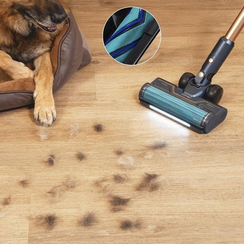 El sistema ErgoWet permite aspirar y fregar simultáneamente, optimizando el tiempo y garantizando suelos impecables y brillantes. El cepillo HairLess XL antienredos y el accesorio Pet Style están diseñados para hogares con mascotas, evitando atascos y recogiendo eficazmente pelos de animales. El tubo flexible y la luz LED facilitan la limpieza en zonas bajas y rincones de difícil acceso, mientras que la pantalla LED informa en tiempo real sobre batería, modos y alertas de mantenimiento.