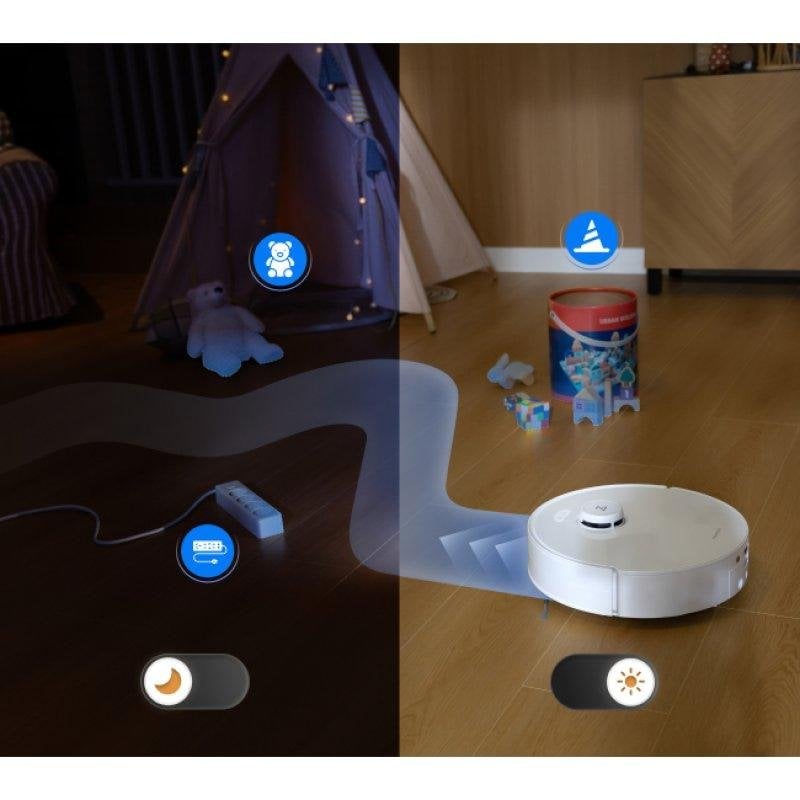 Navigation intelligente : Système autonome StarSight 2.0 avec IA, détection d’objets et cartographie avancée pour éviter les obstacles (jusqu’à 4,5 + 4,3 cm) et optimiser les parcours de nettoyage, même dans les environnements complexes.