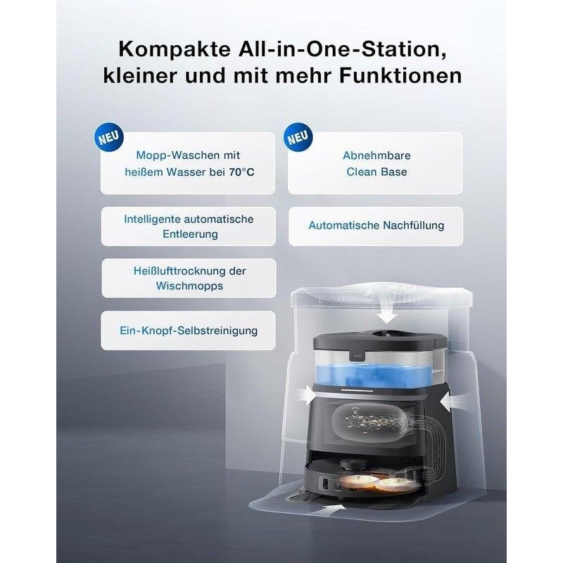 Station de vidage automatique : Ce modèle dispose d’une station OMNI ultra complète : vidage automatique du bac à poussière, lavage et séchage à chaud des serpillières, et recharge automatique. Profitez d’un entretien minimisé : tout est automatisé pour un entretien sans contrainte.