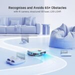Navigation : technologie avancée LiDAR Laser Distance Sensor, scanner 3D structuré et caméra IA. Le robot identifie plus de 65 objets, évitant meubles, câbles et jouets avec une précision optimale, même dans des pièces encombrées.