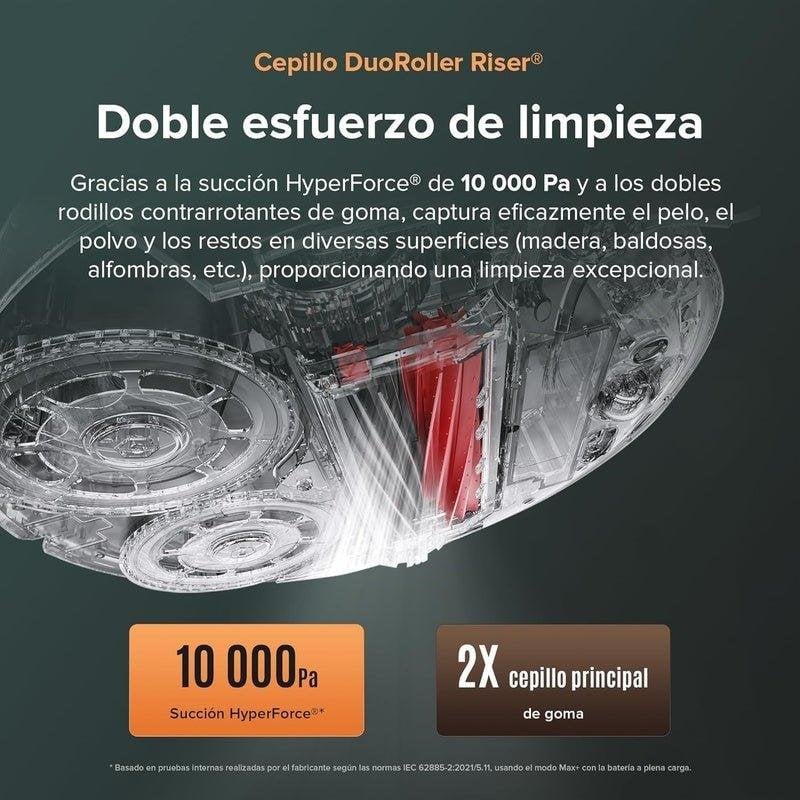 Cepillo spécial poils d’animaux : Double brosse centrale en caoutchouc anti-enchevêtrements, idéale pour les poils longs et les animaux domestiques, limitant l’accumulation de cheveux et optimisant la puissance d’aspiration sur tous types de surfaces.