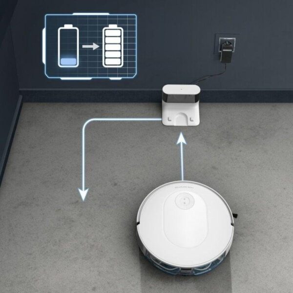 Autonomie et retour automatique : batterie lithium-ion offrant jusqu’à 120 minutes d’autonomie. Retour automatique sur la base de chargement puis recharge complète en 4 heures. Nettoyage continu pour grandes superficies.