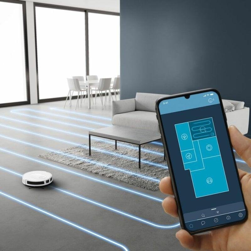Connectivité et contrôle intelligent : connectivité WiFi avec gestion totale via l’application mobile. Programmez, personnalisez les routines, gérez les zones sensibles (murs virtuels) et lancez le robot à distance. Compatible assistants vocaux Alexa et Google Home.