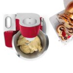 - Muy multifuncional gracias al set de pastelería (varillas batidoras, varillas mezcladoras y garfio de amasar) y accesorio con tres discos para rallar, cortar y picar.