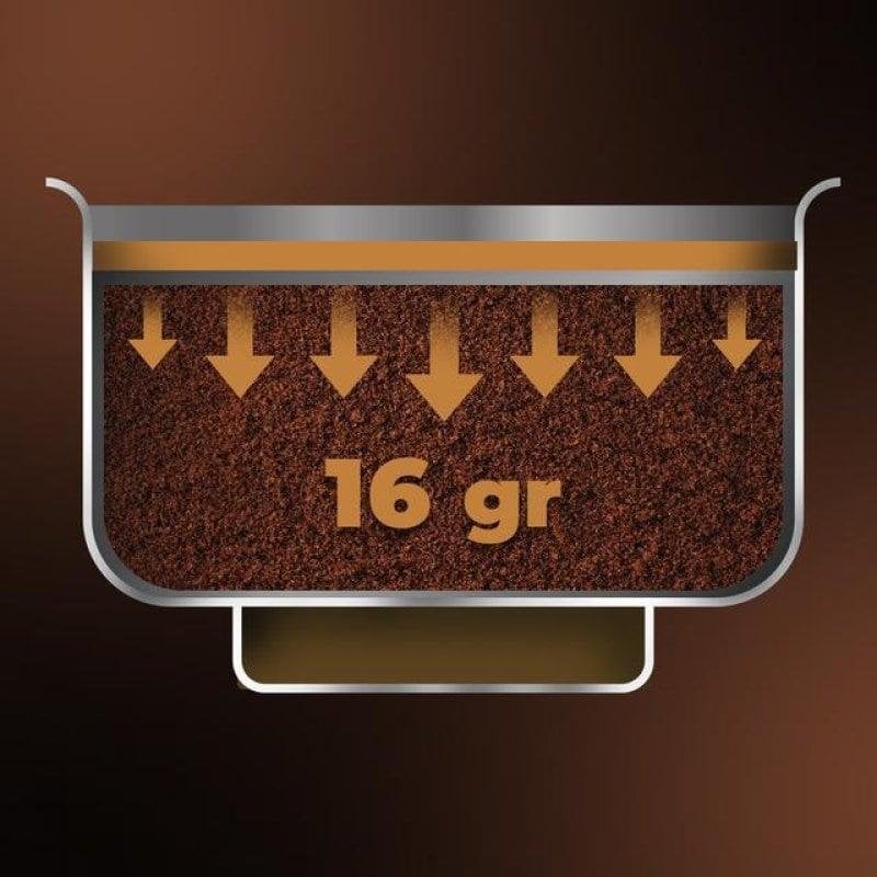 Depósito de 2L y grano de 1kg. Olvida la recarga constante: con capacidad de agua para 2 litros y café en grano para 1 kg, es perfecta para un consumo intensivo, sin interrupciones y con los parámetros óptimos de conservación de aroma y sabor.