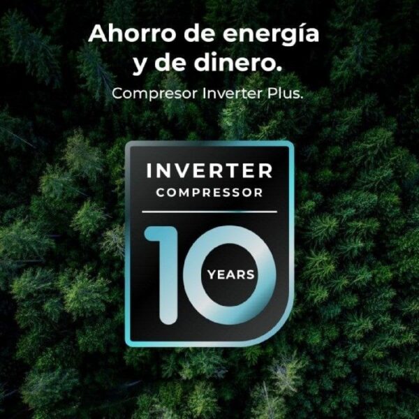 Compresor Inverter Plus. Mejor eficiencia energética y un menor consumo. El sistema gestiona activamente la temperatura interior, adaptándose en tiempo real a las condiciones y evitando picos innecesarios de energía, lo que reduce el desgaste y el ruido mecánico.