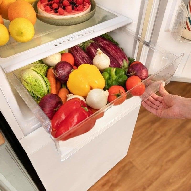 Almacenamiento inteligente y gran capacidad. Sus 250 litros totales junto a compartimentos optimizados (frigorífico de 180 L y congelador de 70 L) aseguran una organización eficiente y acceso rápido a todos tus alimentos. El botellero extra y el cajón Humidity Box para frutas y verduras te permiten separar y conservar cada tipo de producto en condiciones ideales.