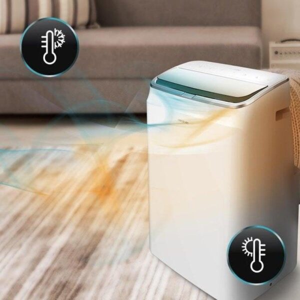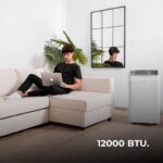 Potencia de refrigeración profesional. Este aire acondicionado portátil ofrece una capacidad real de 12000 BTU y bomba de calor, garantizando climatización eficiente tanto en verano como en invierno. Su rendimiento abarca eficazmente estancias de hasta 26 m² y mejora la respuesta térmica respecto a equipos convencionales.