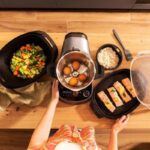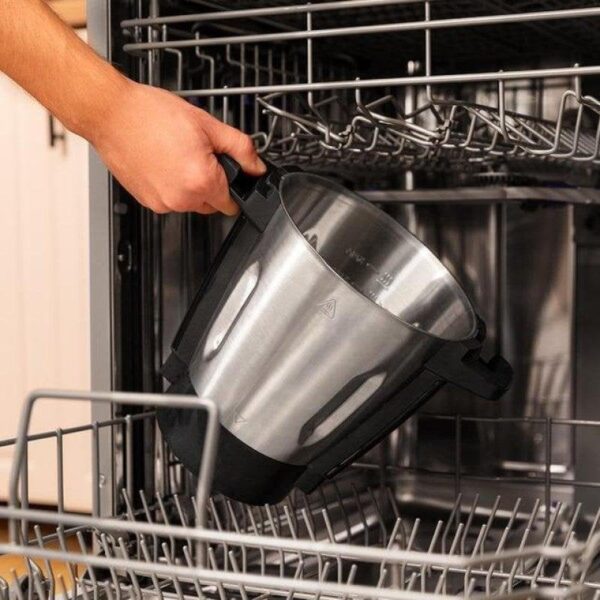 ¿Puede trabajar con grandes volúmenes o cocinar varios platos a la vez? Sí, permite hasta 3,3 litros en la jarra principal y cocinar hasta cuatro elaboraciones simultáneas usando jarra, vaporera doble y cestillo de hervir. Esto optimiza el flujo de trabajo en la cocina, ideal tanto para familias como para entornos profesionales.