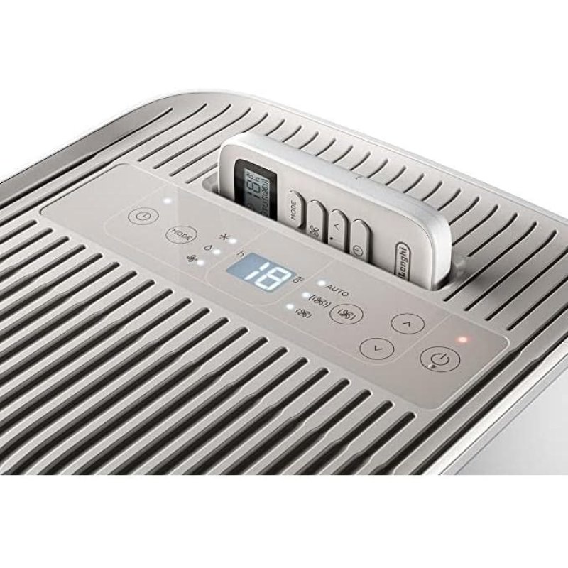 De’Longhi PAC ES72 Classic es el acondicionador de aire portátil pequeño y eficaz diseñado para ocupar menos espacio. Esta unidad de refrigeración ecológica cuenta con una función de deshumidificación y 3 velocidades de ventilador, lo que permite una refrigeración más silenciosa a una velocidad mínima. Cuenta con una pantalla LCD con controles táctiles y un práctico control remoto, además de asas integradas y ruedas giratorias para facilitar el transporte.