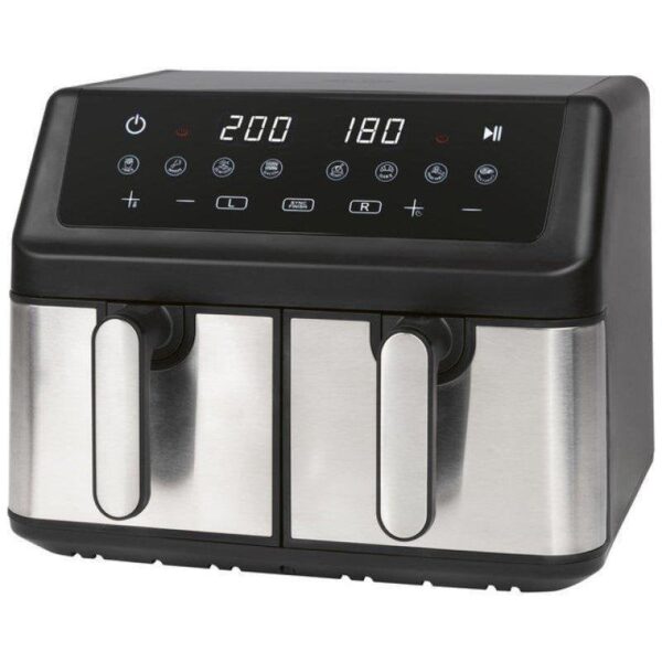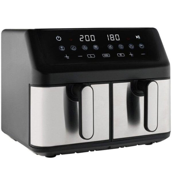 Con 2000 W de potencia y un rango de temperatura de 80 ºC a 200 ºC, esta freidora de aire no solo fríe, sino que también hornea y deshidrata, adaptándose a cualquier técnica culinaria avanzada. El panel de control táctil LED doble ofrece ajustes independientes para cada cesta, permitiendo un control total sobre tiempos y temperaturas, lo que garantiza resultados homogéneos y personalizados.