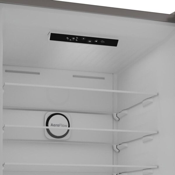 Ahorro y control avanzado. Su tecnología No Frost combina un sistema de refrigeración ventilada con función antiescarcha, descongelación automática y display táctil interior con control electrónico preciso, garantizando conservación homogénea, menor consumo y facilidad de uso diario. Clase E con solo 295 kWh/año.