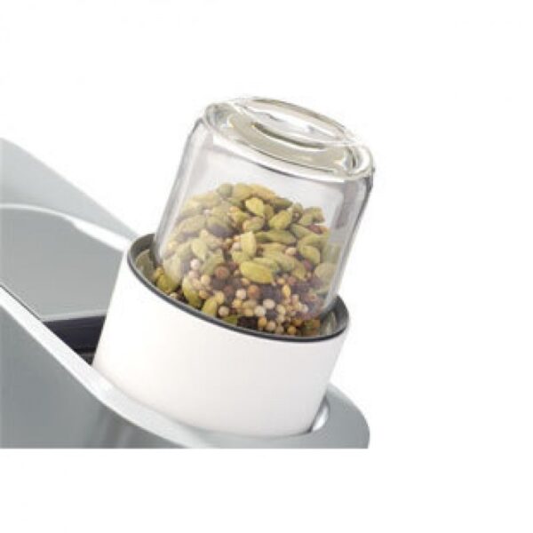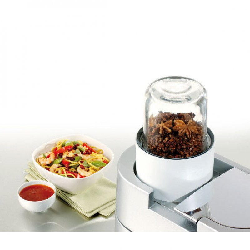 El Molinillo de cristal AT320 es un gran accesorio para picar, moler y mezclar pequeñas porciones de alimentos. Ideal para los alimentos infantiles, especias, café, adobos, aderezos, purés, hierbas y frutos secos. Incluye tres frascos de vidrio para un almacenamiento seguro. El envase más pequeño es para cortar mucho más rápido. La hoja plana es ideal para los granos de café.