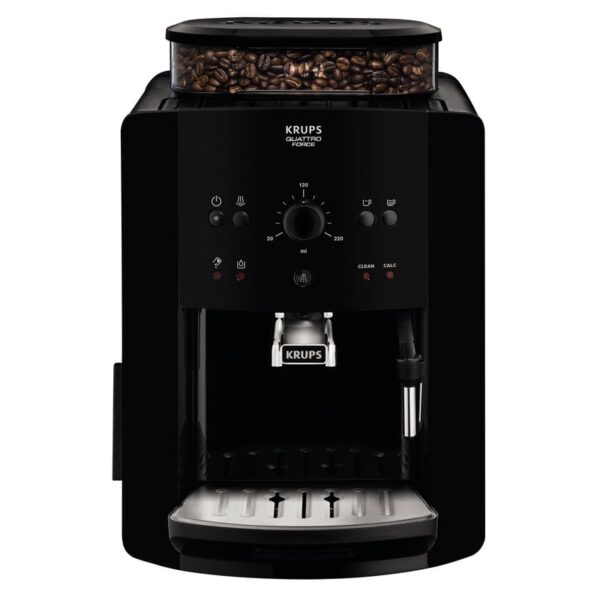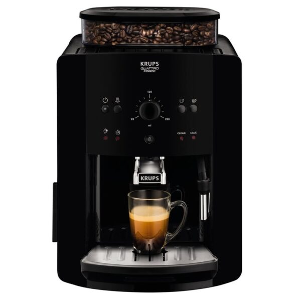 Quattro Force de KRUPS perfecciona todos los pasos del proceso de preparación del espresso, del grano a la taza: con un molido un 20 % más rápido, un prensado ultraplano, una filtración excelente y un drenaje avanzado para un rendimiento duradero.