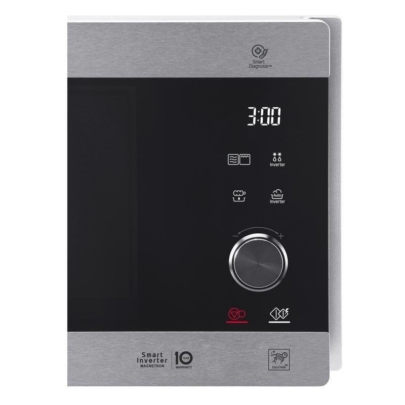 El LG MH6565CPS es el microondas pensado para expertos que necesitan máximo control y versatilidad en la cocina doméstica o profesional. Equipado con tecnología Smart Inverter, garantiza una gestión ultraprecisa de la potencia para conseguir cocciones homogéneas, descongelación eficiente y resultados gourmet en cada receta. Su capacidad de 25 litros y una bandeja giratoria de gran diámetro permiten preparar platos voluminosos o varias raciones simultáneamente, adaptándose tanto a familias como a entornos técnicos exigentes.