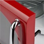 El plato giratorio de 245 mm asegura una distribución homogénea del calor, mientras que la puerta de apertura lateral y el diseño compacto (455 x 340 x 260 mm) lo hacen perfecto para cualquier espacio. El acabado en rojo aporta un toque moderno y distintivo a la cocina.