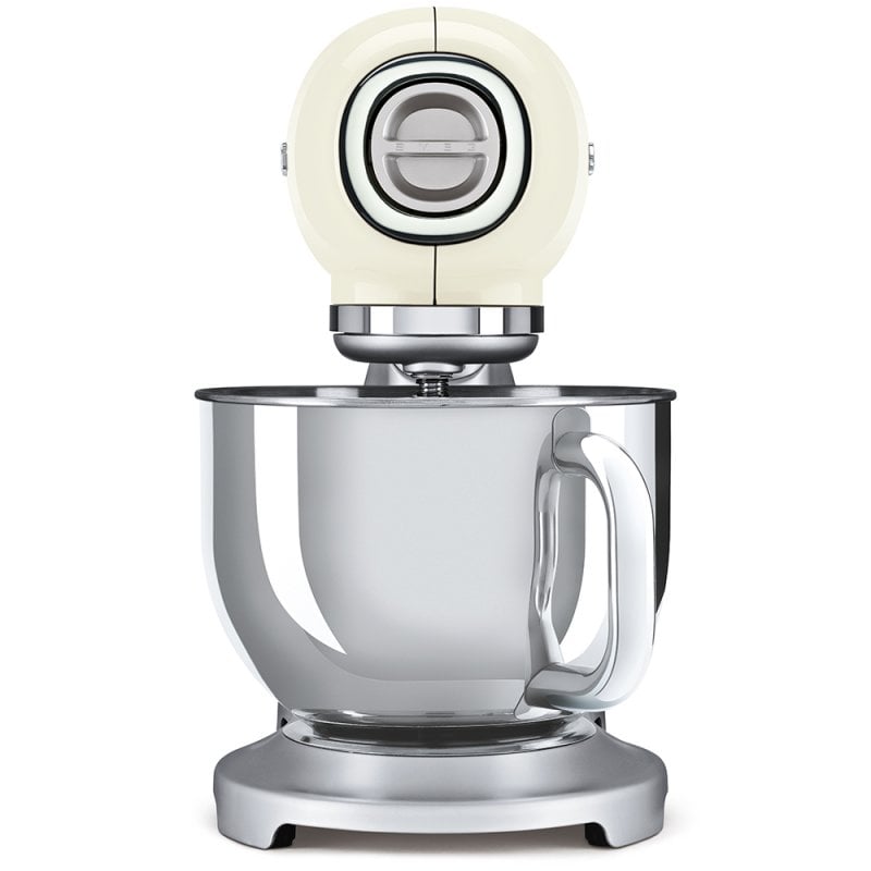 Robot de cocina Smeg estética Años 50, con 4.8 litros de capacidad, 10 velocidades, sistemas de seguridad y color crema.